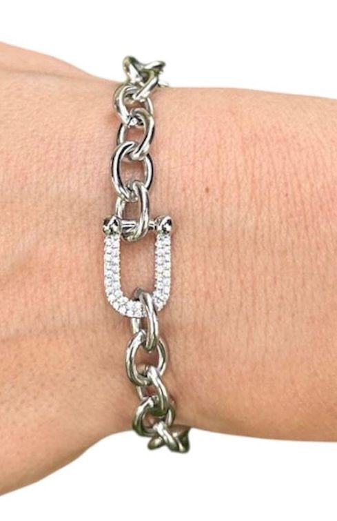Bracelet chaîne en pierre blanche